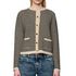 Optez pour ce gilet Pieces Coloris : Noir, BeigeCol rondManches longuesComposition : 60% Polyester recyclé, 20% Laine, 20% NylonPoches plaquées sur le devantBouton en forme de cœur sur le devantCardigan en laine mélangée