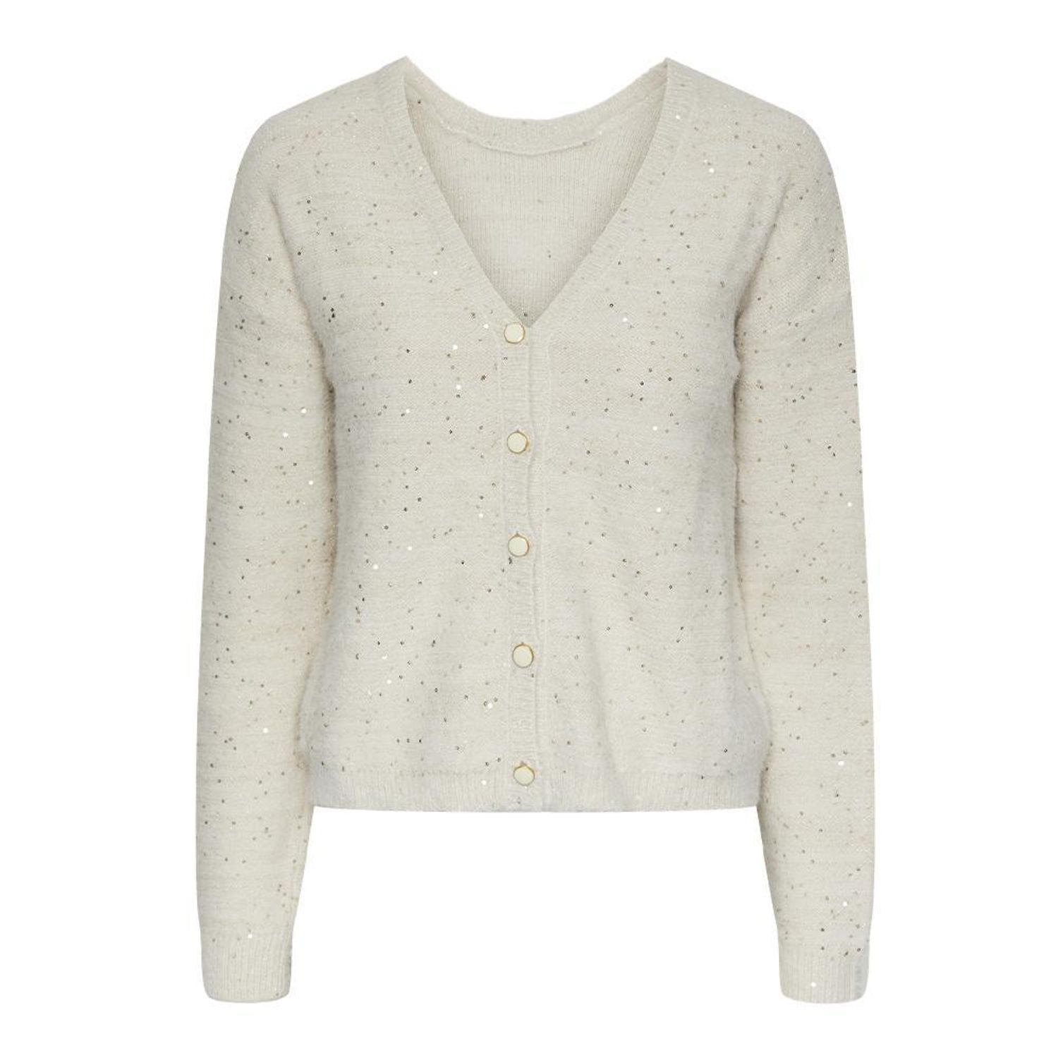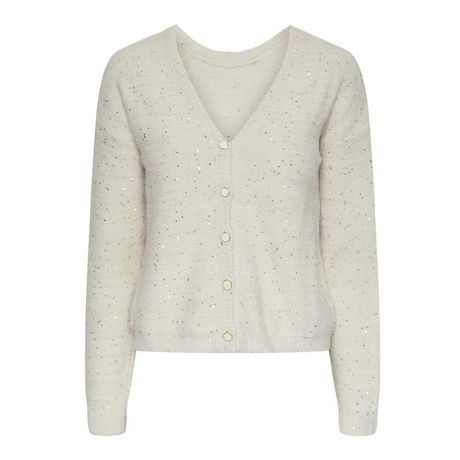 Optez pour ce gilet Pieces- Coloris : Ecru- Col V- Manches longues- Composition : 60% nylon, 32% acrylique, 8% fibres métalliques