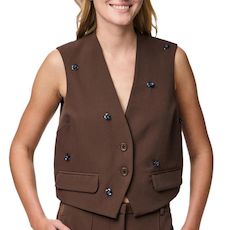 Optez pour le gilet de la marque PIECES !- Coloris : Marron- Col V- Sans manches- Boutons fermeture- Composition : 93 % de polyester recyclé 7% élasthanne