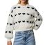 Pull femme Pieces !Manches longuesCol rondColoris : Blanc/NoirMailleImprimé coeurComposition : 80% polyester recyclé , 20% polyester