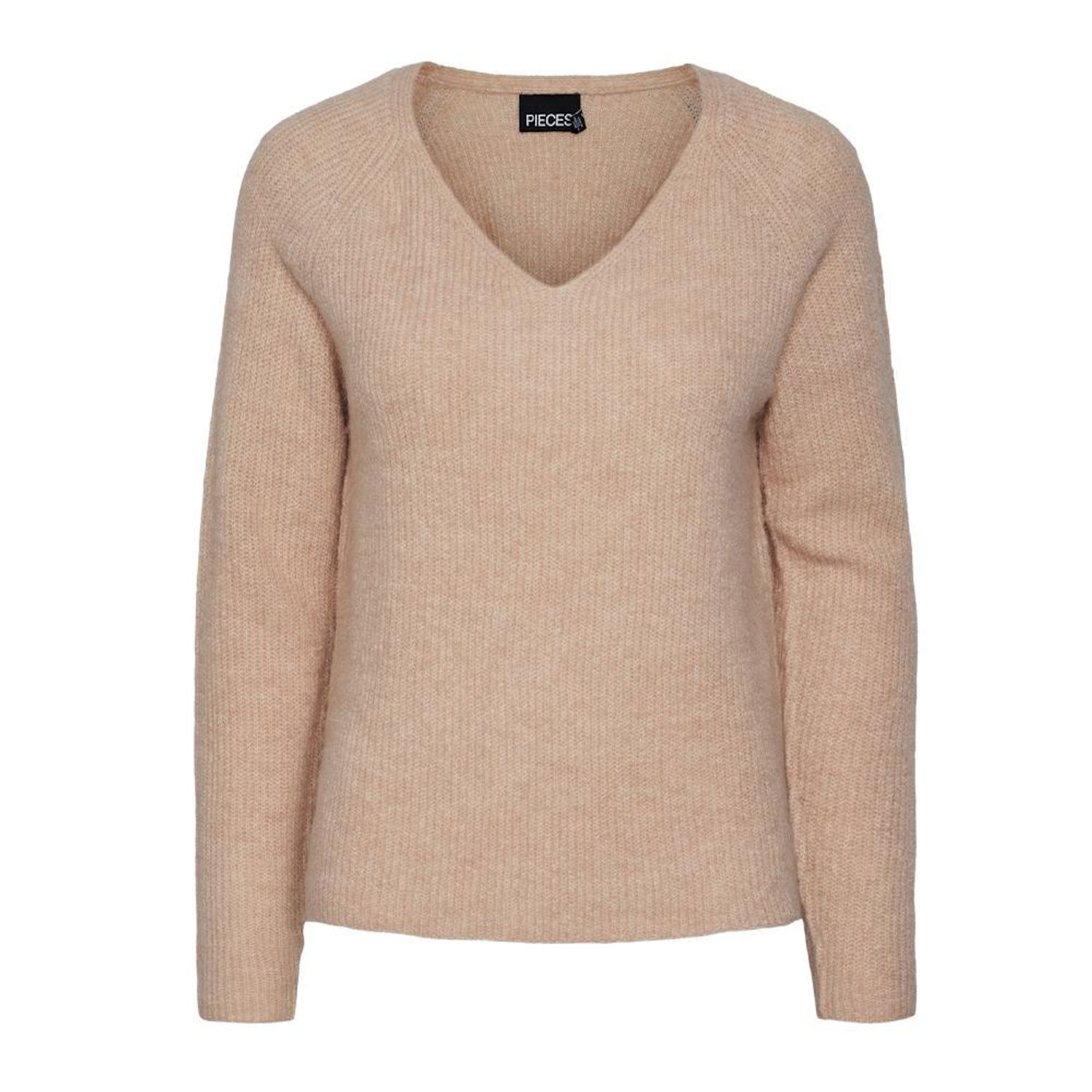 Craquez le pull femme Pieces !Manches longuesCo VColoris : RoseMaille douceComposition : 60% polyester recyclé , 22% acrylique , 9% nylon , 5% laine , 4% élasthanne