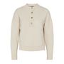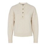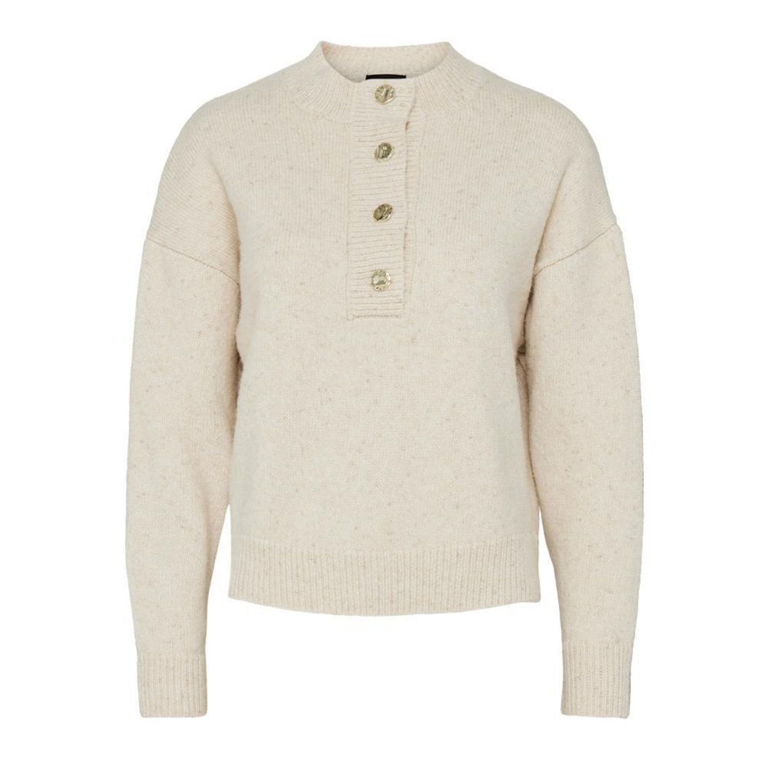 Craquez pour les pull de la marque PIECES !Coloris : Écru Col montant Manches longues Boutons doréPull en maille Composition : 50% polyester recyclé, 37% polyester, 10% fibres métalliques, 3% laine