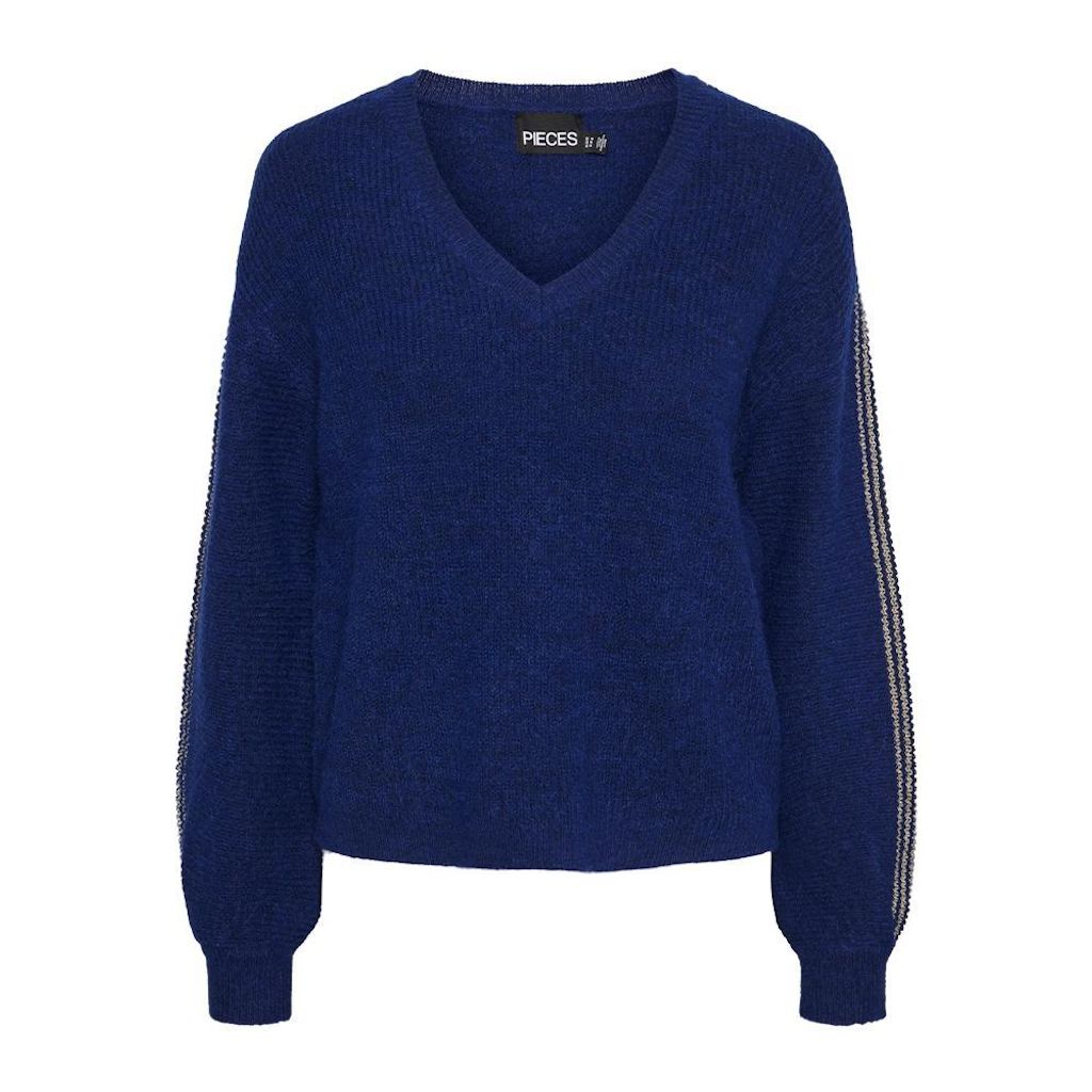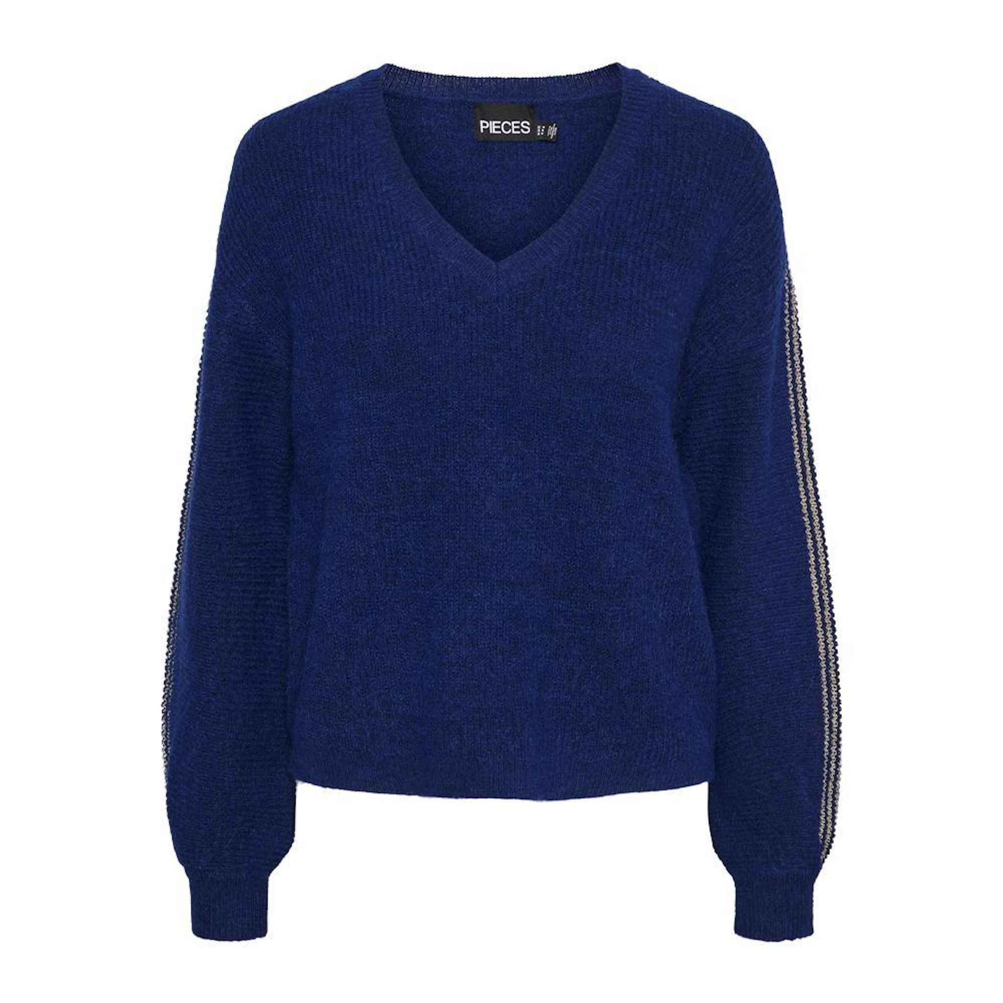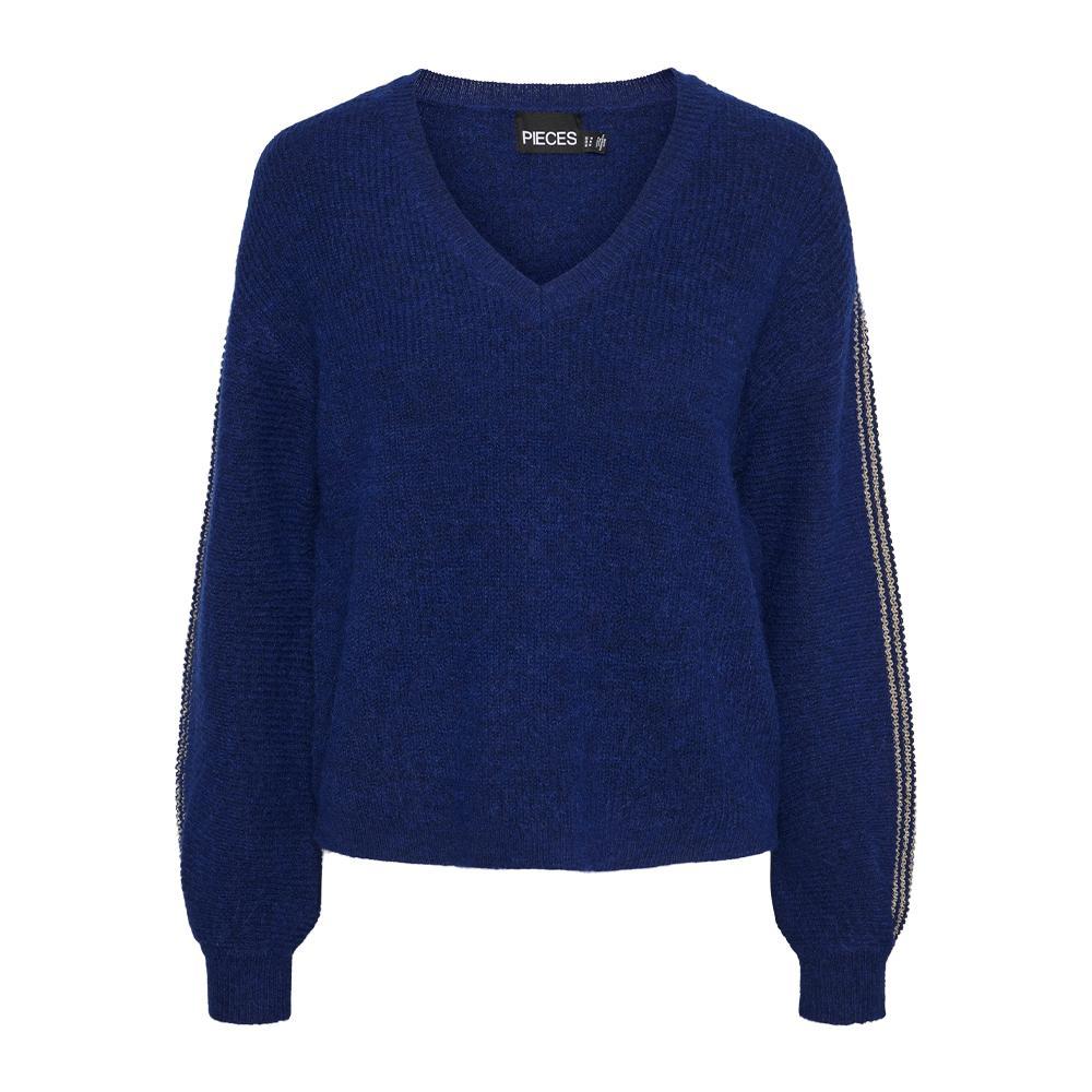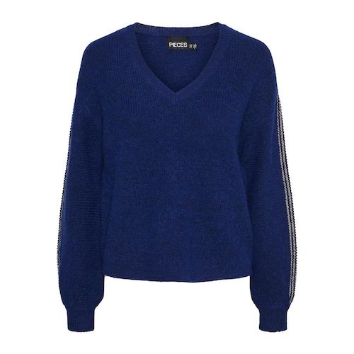 Optez pour ce pull Pieces Coloris : BleuCol V Manches longues Composition : 50% Polyester recyclé, 14% Nylon, 10% Laine, 5% Alpaga, 4%