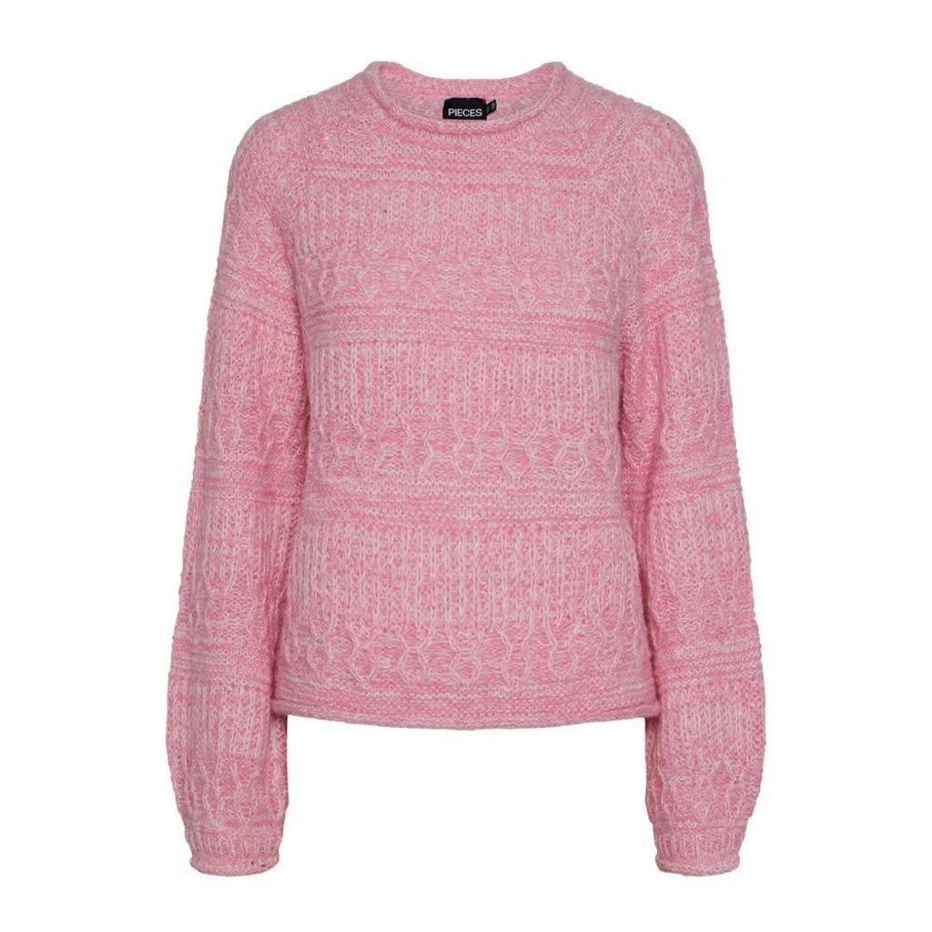 Optez pour ce pull Pieces Coloris : RoseManches longuesComposition : 76% acrylique 24% polyesterCol rond