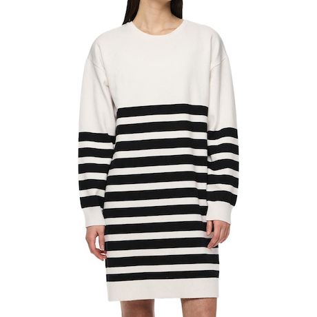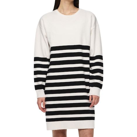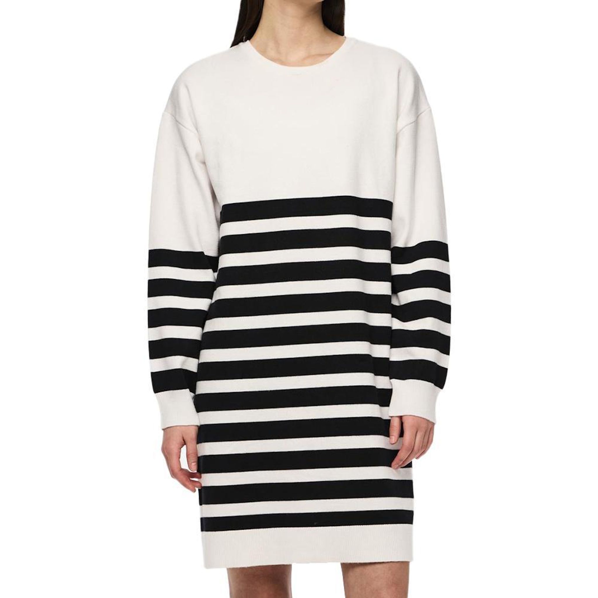 Optez pour cette robe de la marque Pieces- Coloris : Blanche/Noire- Col rond- Manches longes- Motifs imprimés- Épaules tombantes- 52% Viscose, 30% Polyester, 18% Nylon