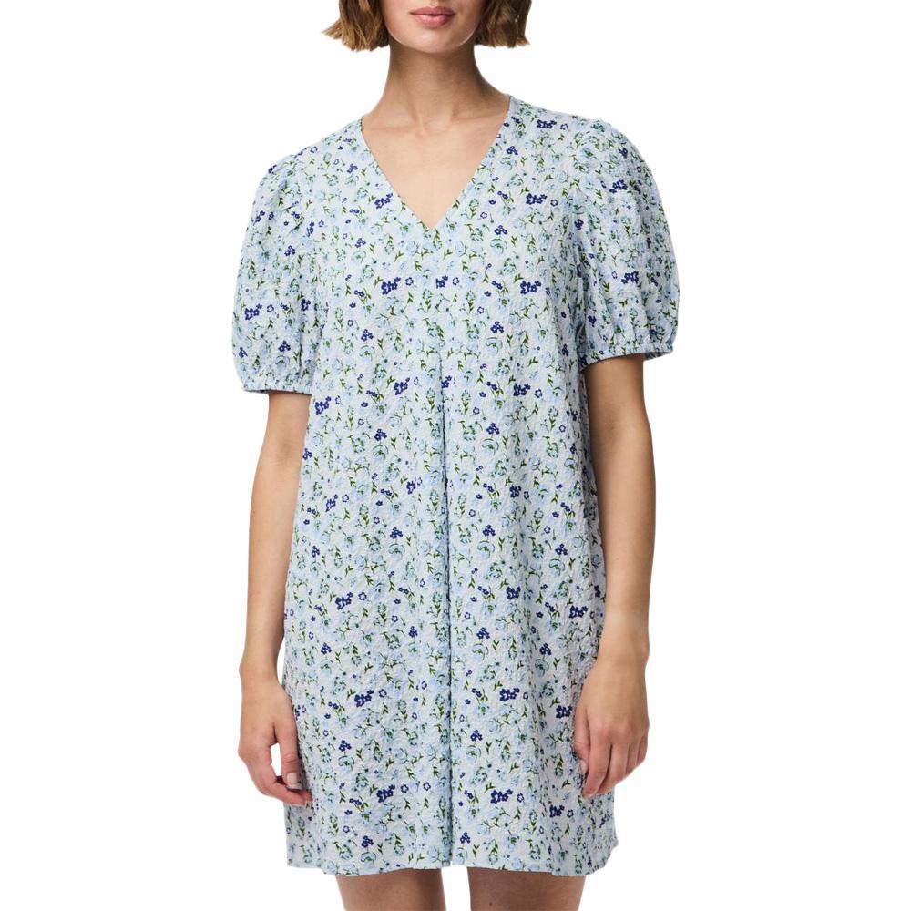 Craquez pour la robe de la marque PIECES !Coloris : Bleu Col VManches courtesTissu impriméCoupe courteComposition : 96% polyester, 4% élasthanne