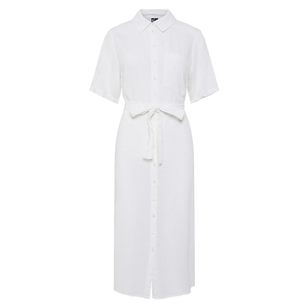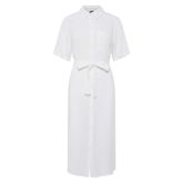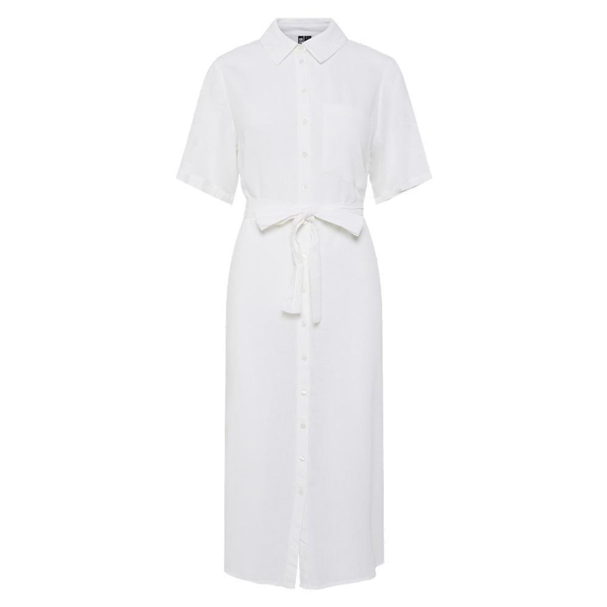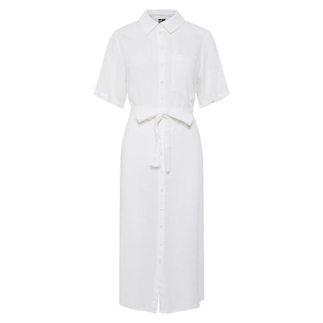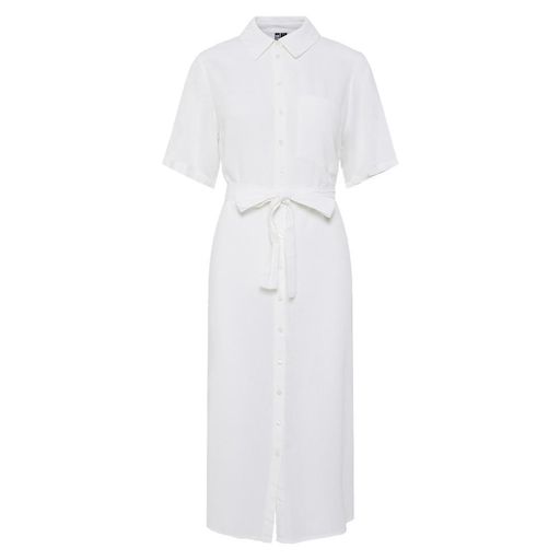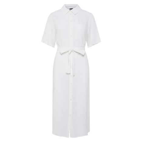 Optez pour cette robe Pieces à prix bas !- Coloris : Blanc- Col chemise- Manches courtes- Composition : 70% Viscose, 30% Lin