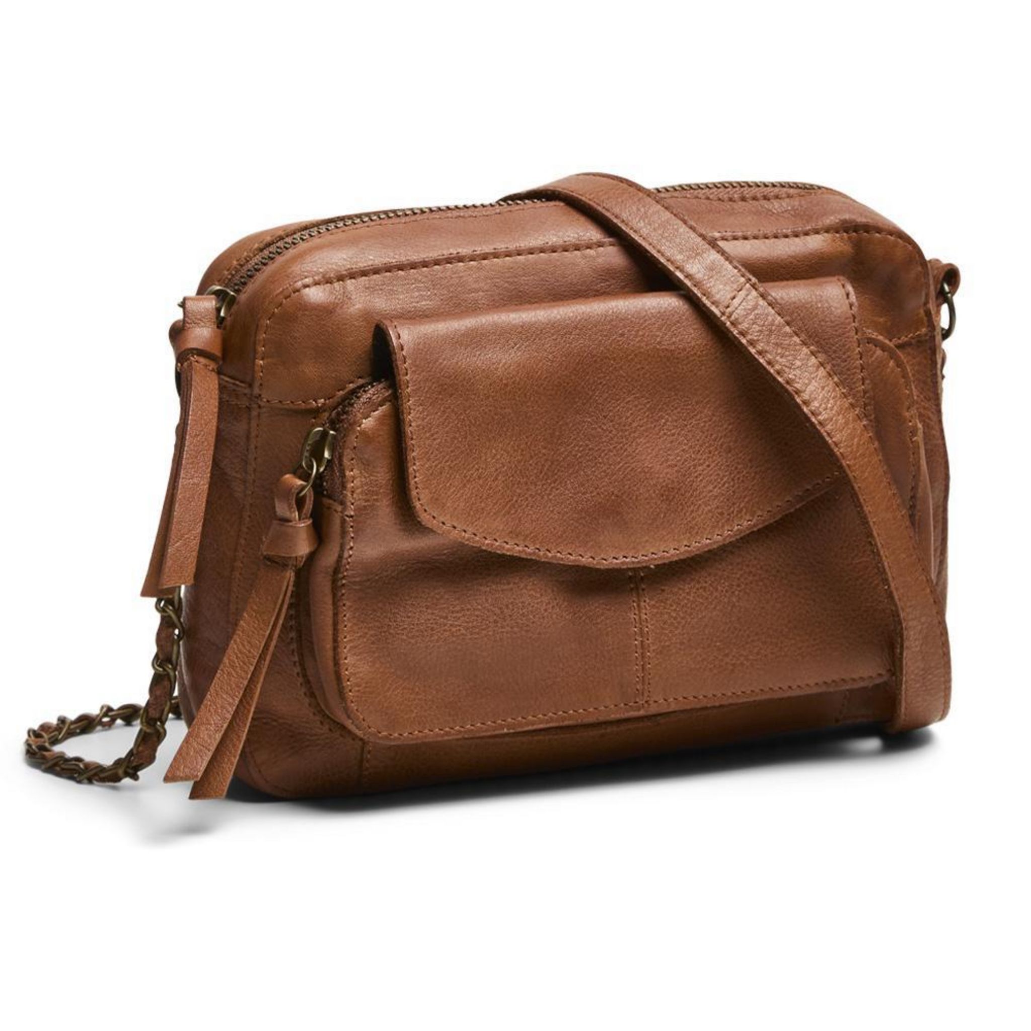 Optez pour ce sac à bandoulière PiecesColoris : Camel Porté traversBandoulière en chaîne Poche avant zippée avec rabatCompartiment principal zippé1 poche intérieure zippéeDimensions : L 21 x H16 x P5 cm100% Cuir de vachette