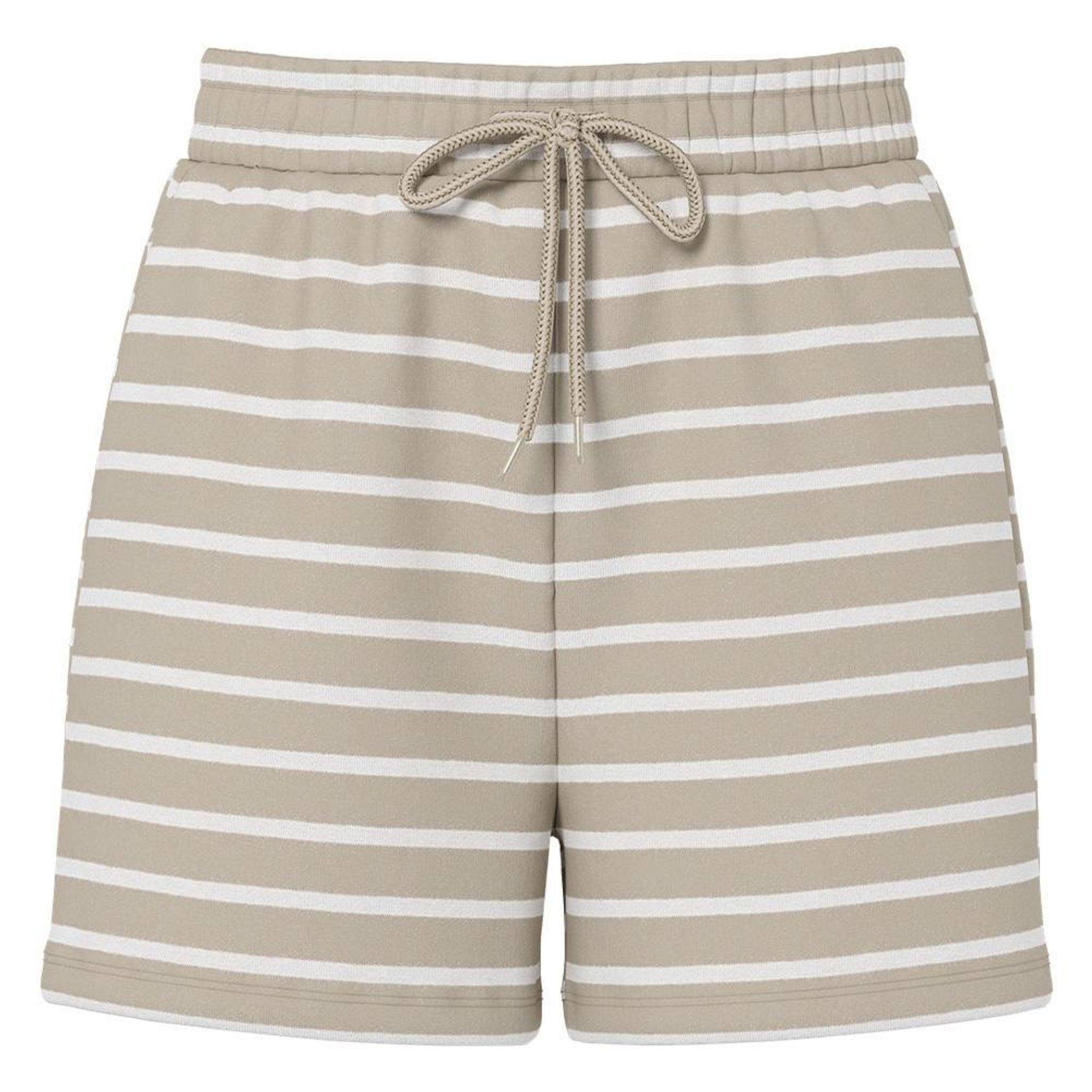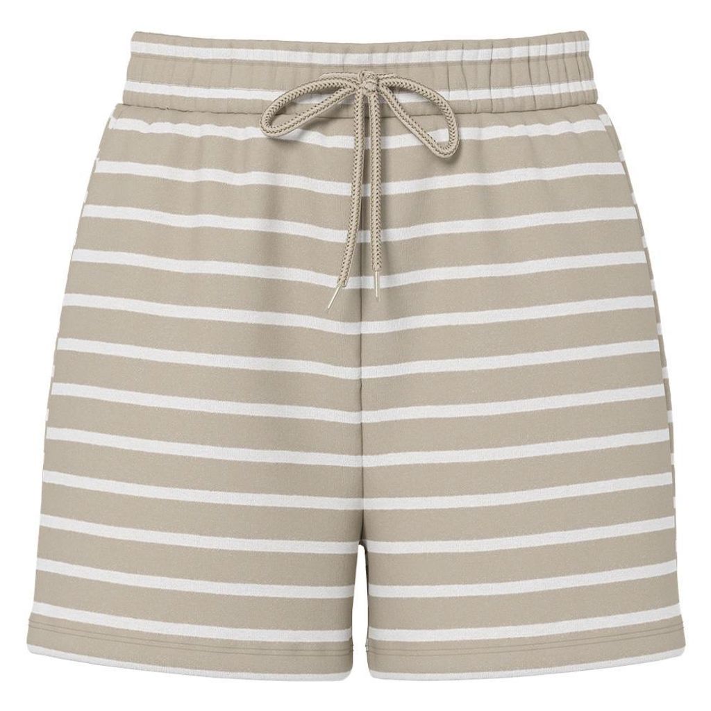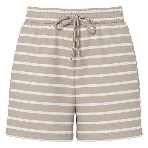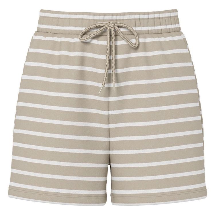 Optez pour ce short Pieces à prix bas !Coloris : Beige/BlancTaille élastiqueCordon de serrageComposition : 50% Coton, 50% Polyester recyclé