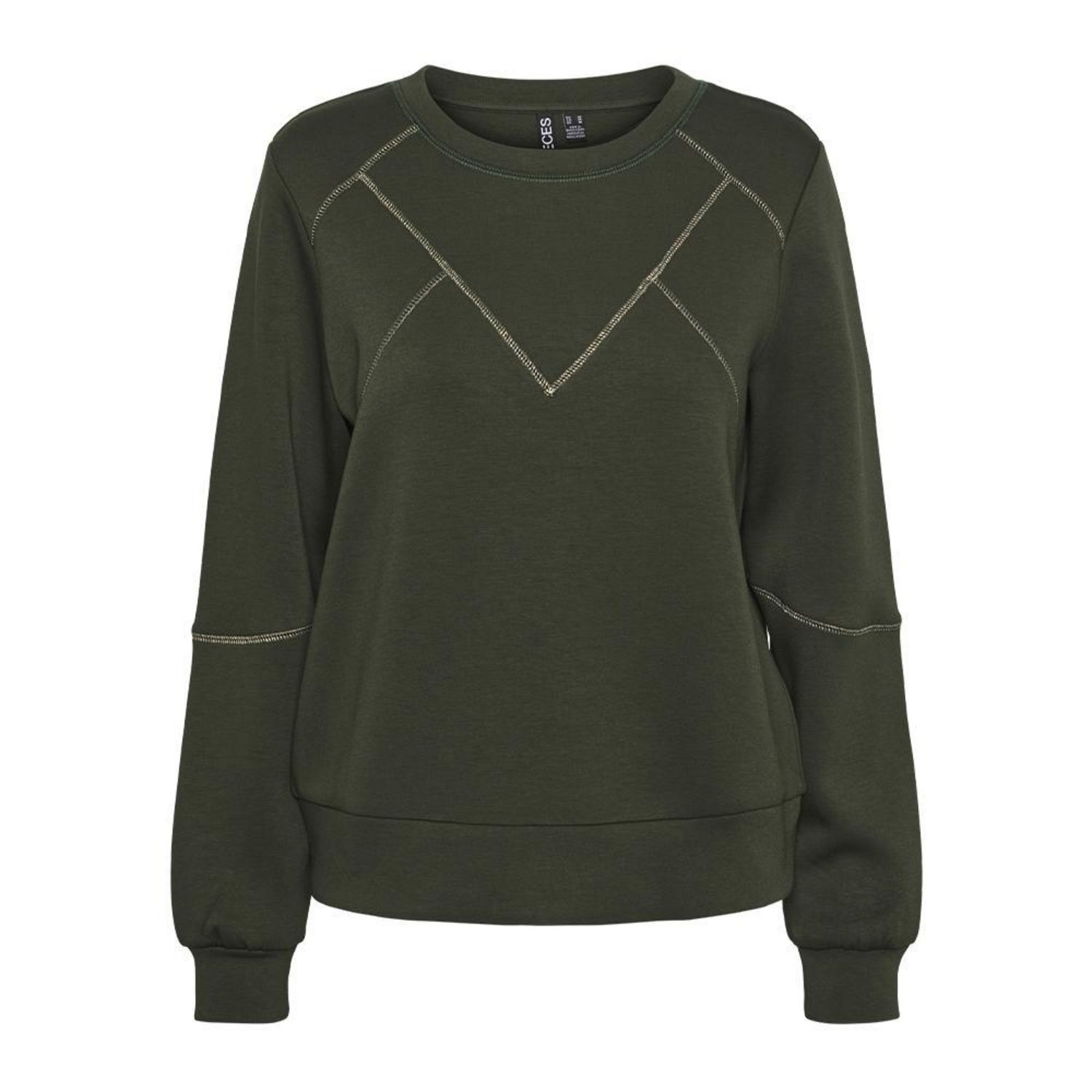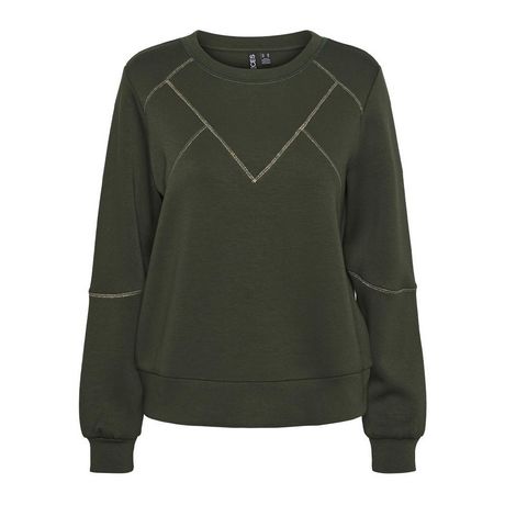 Optez pour le Sweat femme Pieces !Manches longuesCol rondColoris : Kaki Composition : 72% viscose , 23% polyester , 5% élasthanne