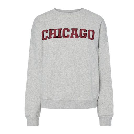 Craquez pour le sweat femme Pieces !- Col rond- Manches longues- Coloris : Gris- Inscription Chicago sur l'avant- Composition : 60% Coton, 40% Polyester