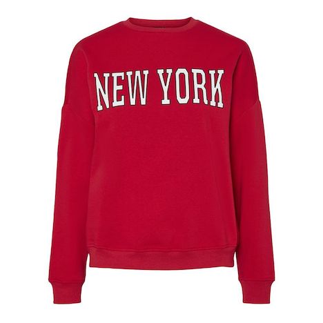Craquez pour le sweat femme Pieces !- Col rond- Manches longues- Coloris : Rouge- Inscription New York sur l'avant- Composition : 60% Coton, 40% Polyester