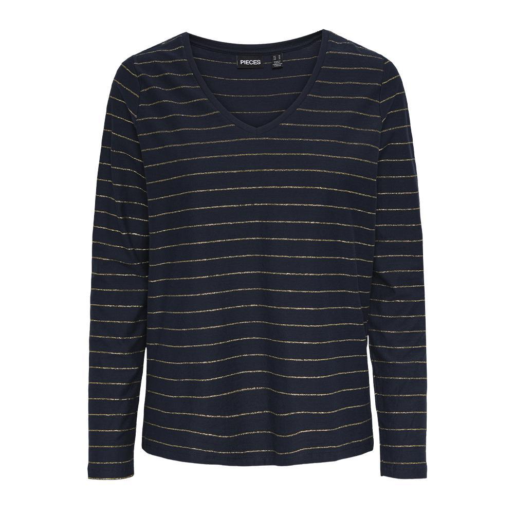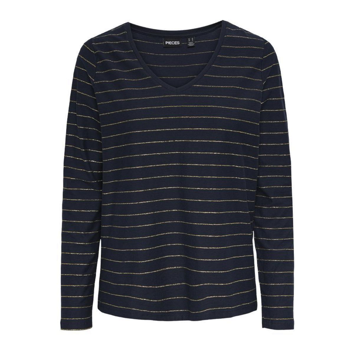 Optez pour ce t-shirt PiecesColoris : Marine/DoréCol VManches longuesComposition : 96% coton / 4% fibres metalliques