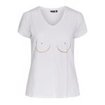 T-shirt femme de la marque Pieces !Manches courtesCol VColoris : Blanc/DoréLogo brodéComposition : 95% coton , 5% élasthanne
