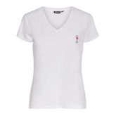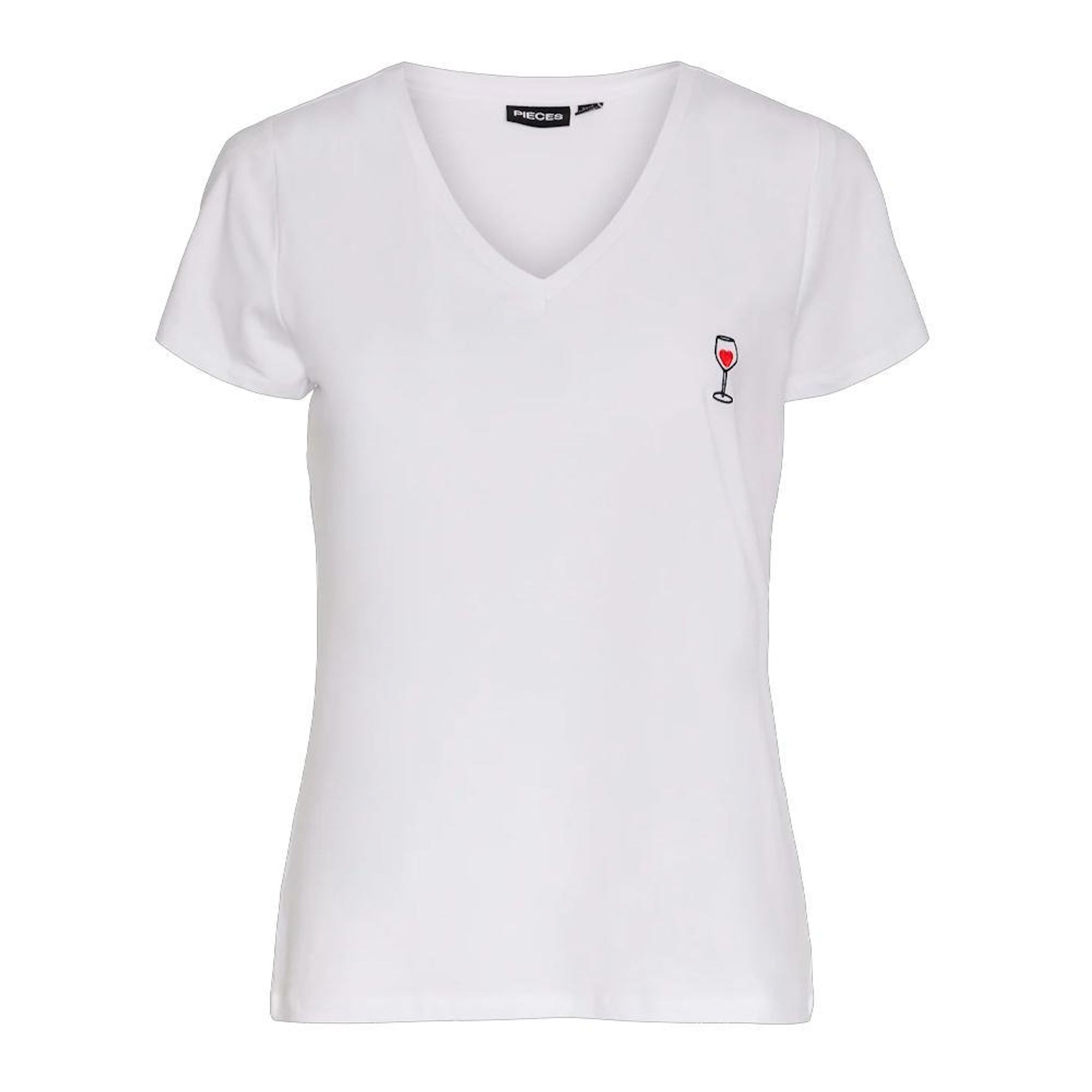 T-shirt femme de la marque Pieces ! Manches courtesCol VColoris : BlancLogo brodé Composition : 95% coton , 5% élasthanne