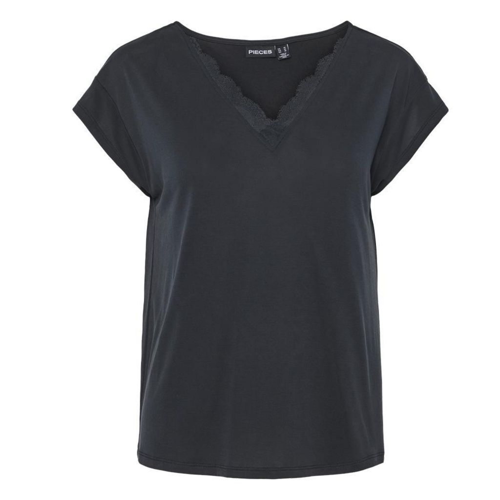 Optez pour ce t-shirt Pieces Coloris : NoirCol V Manches courtesComposition : 73% tencell, 27% polyester