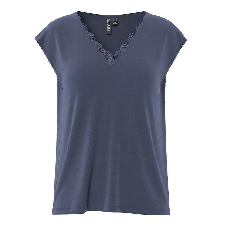 Optez pour ce t-shirt Pieces à prix bas !Coloris :Marine Col VManches courtesComposition : 73% tencell, 27% polyester