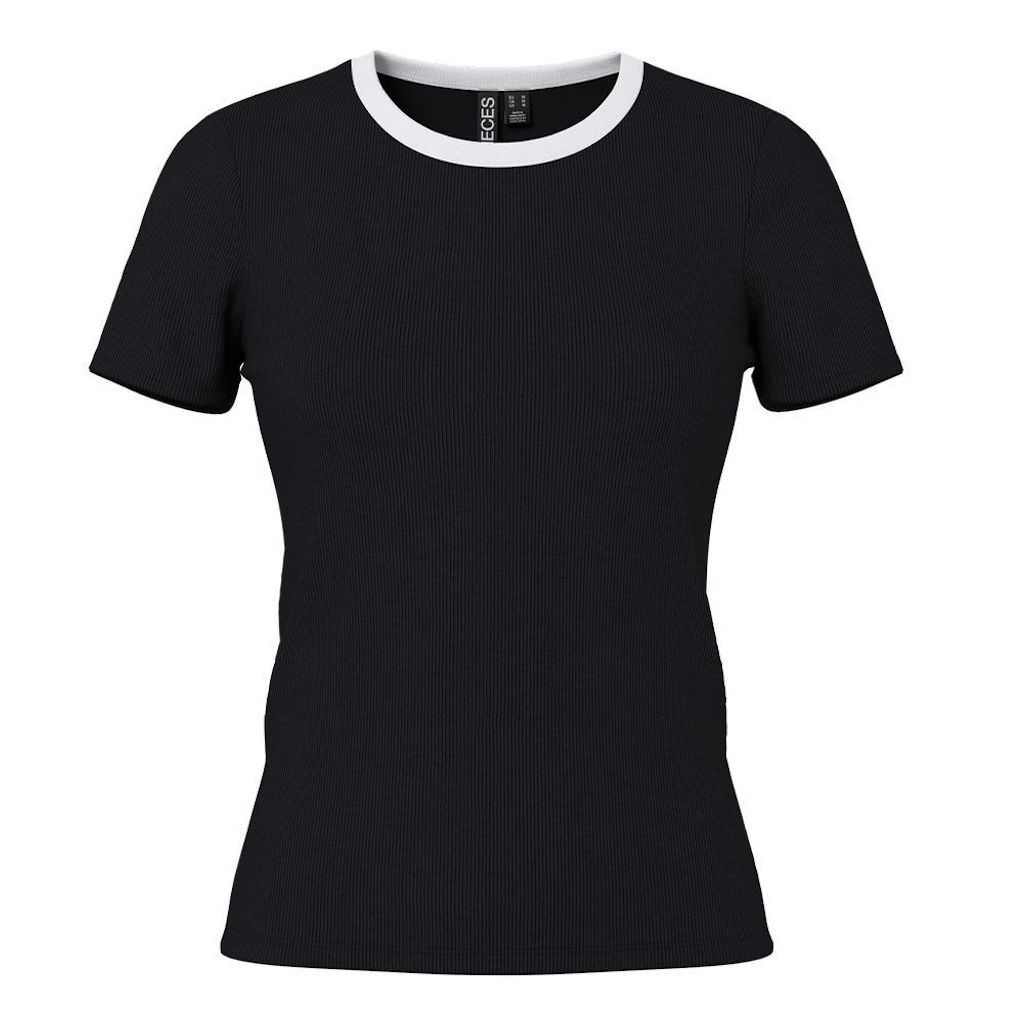 Optez pour ce t-shirt Pieces à prix bas !Coloris : NoirCol rondManches courtesComposition : 95% coton, 5% élasthanne