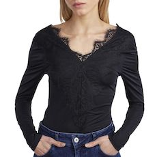 Craquez pour le t-shirt de la marque Pieces !Coloris : Noir Col V dentelle Manches longues Composition : Polyamide 87 %, Élasthanne 13 %