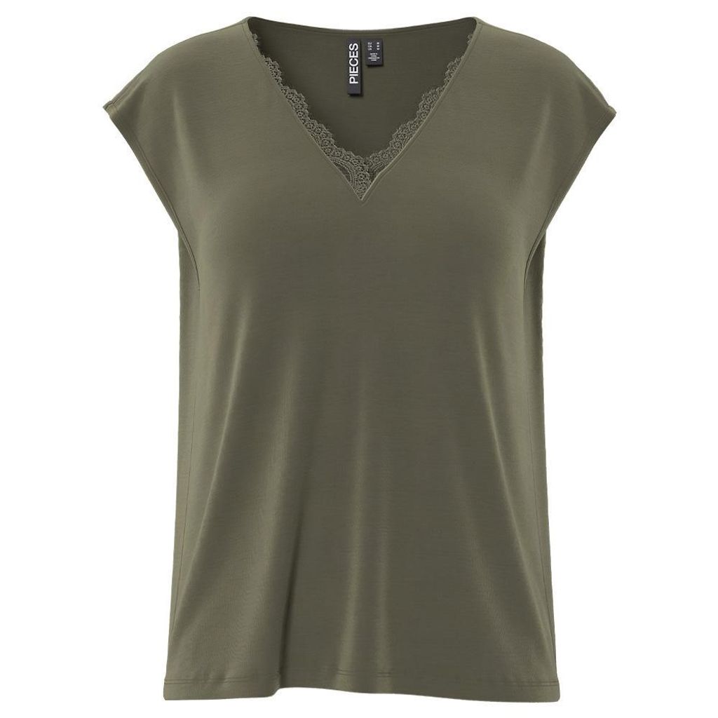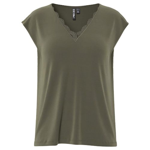 Optez pour ce t-shirt Pieces à prix bas ! Coloris : KakiCol VManches courtesComposition : 73% tencell, 27% polyester