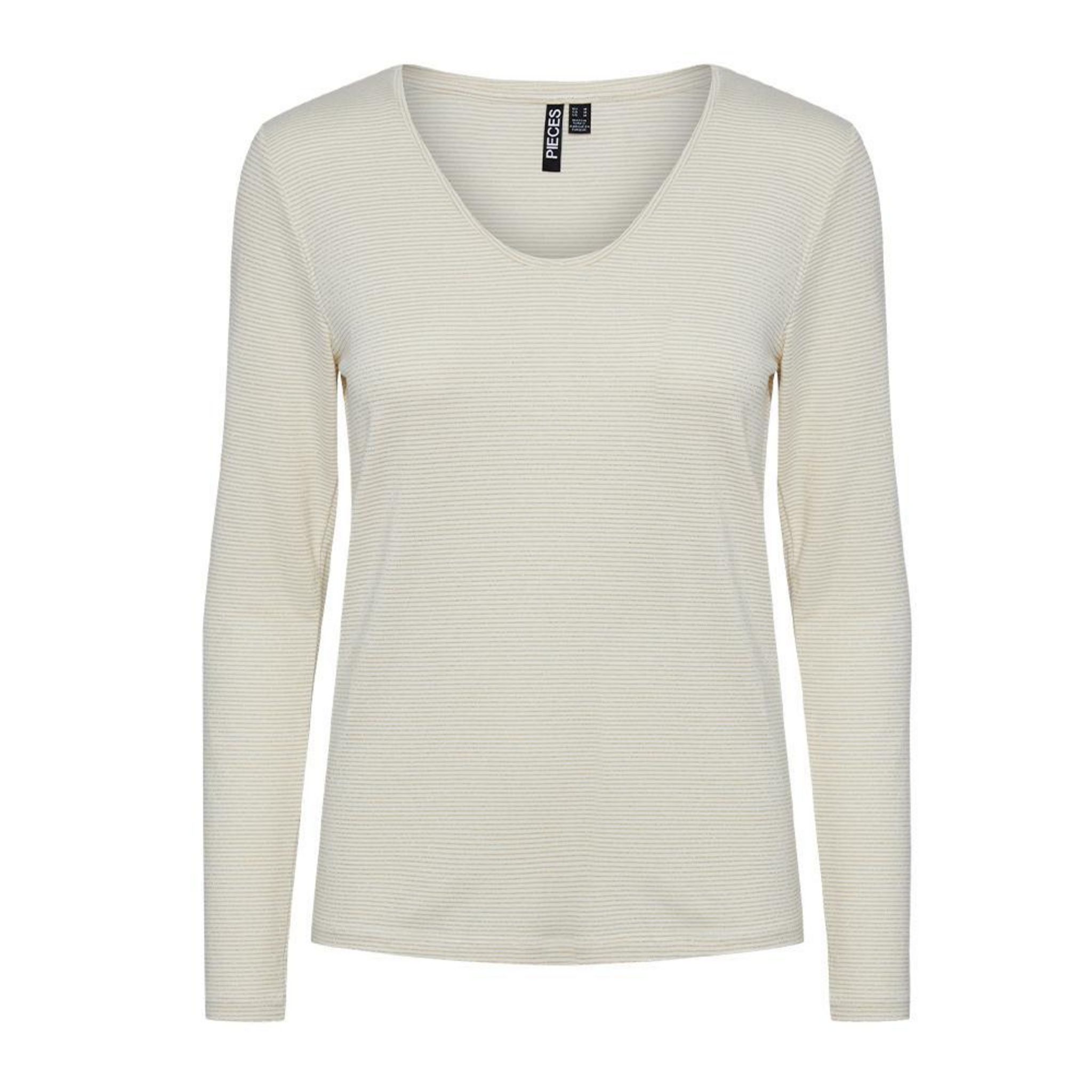 Optez pour ce t-shirt manches longues Pieces Coloris : Blanc/DoréManches régulièresCol VComposition : 95% Viscose LENZING™ ECOVERO™, 5% Élasthanne