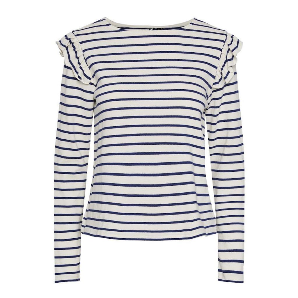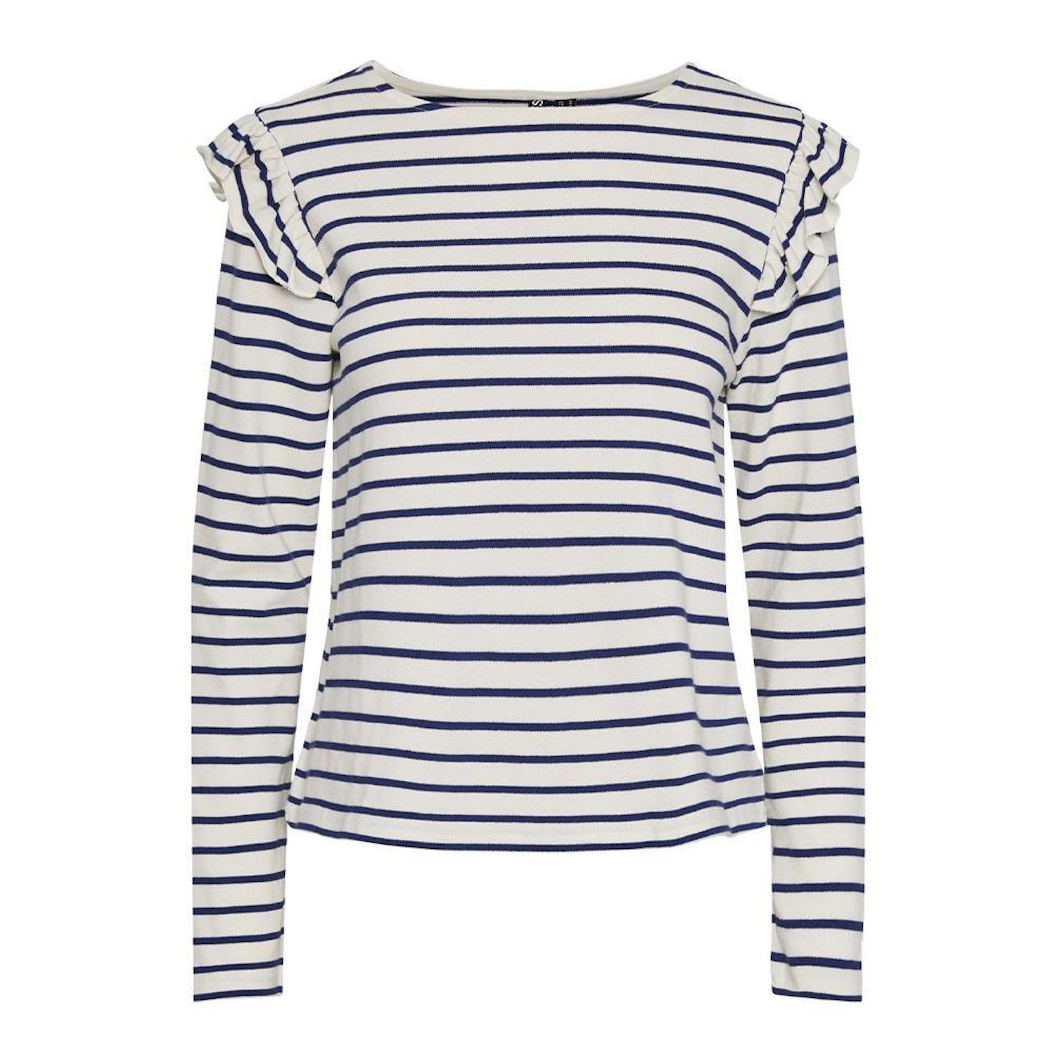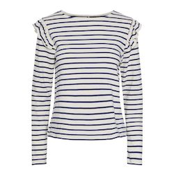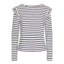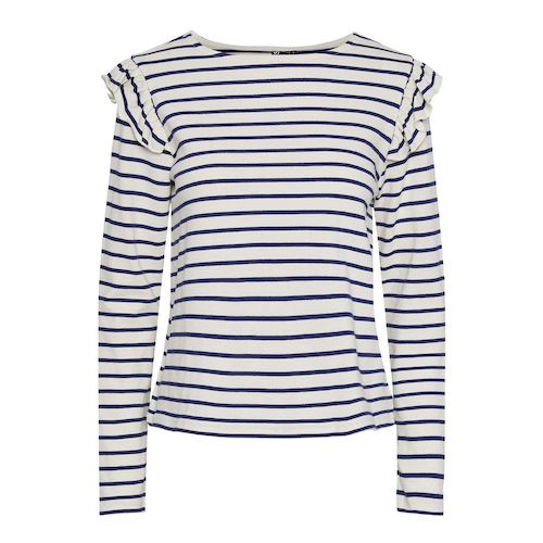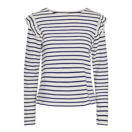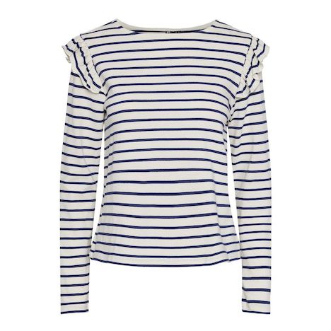 Craquez pour le t-shirt de la marque Pieces !- Coloris : Marine/Blanc- Col rond- Manches longues- Rayures- Composition : 100% Coton