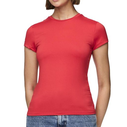 Craquez pour le T-shirt de la marque Pieces !- Coloris : Rouge- Col rond- Manches courtes- Coupe slim- Composition : 92% nylon, 8% élasthanne