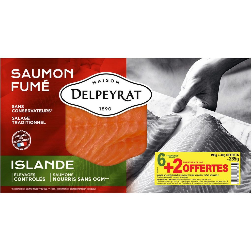 Le Saumon Fumé Delpeyrat origine Islande 6 Tranches mini +2 offertes 235g