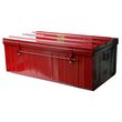 Équipée d'une fermeture à tringle sur deux verrous, cette cantine de rangement métallique rouge possède des renforts sur le dessus qui permettent de superposer plusieurs cantines. Sa capacité de 175 litres peut être idéale pour un déménagement.