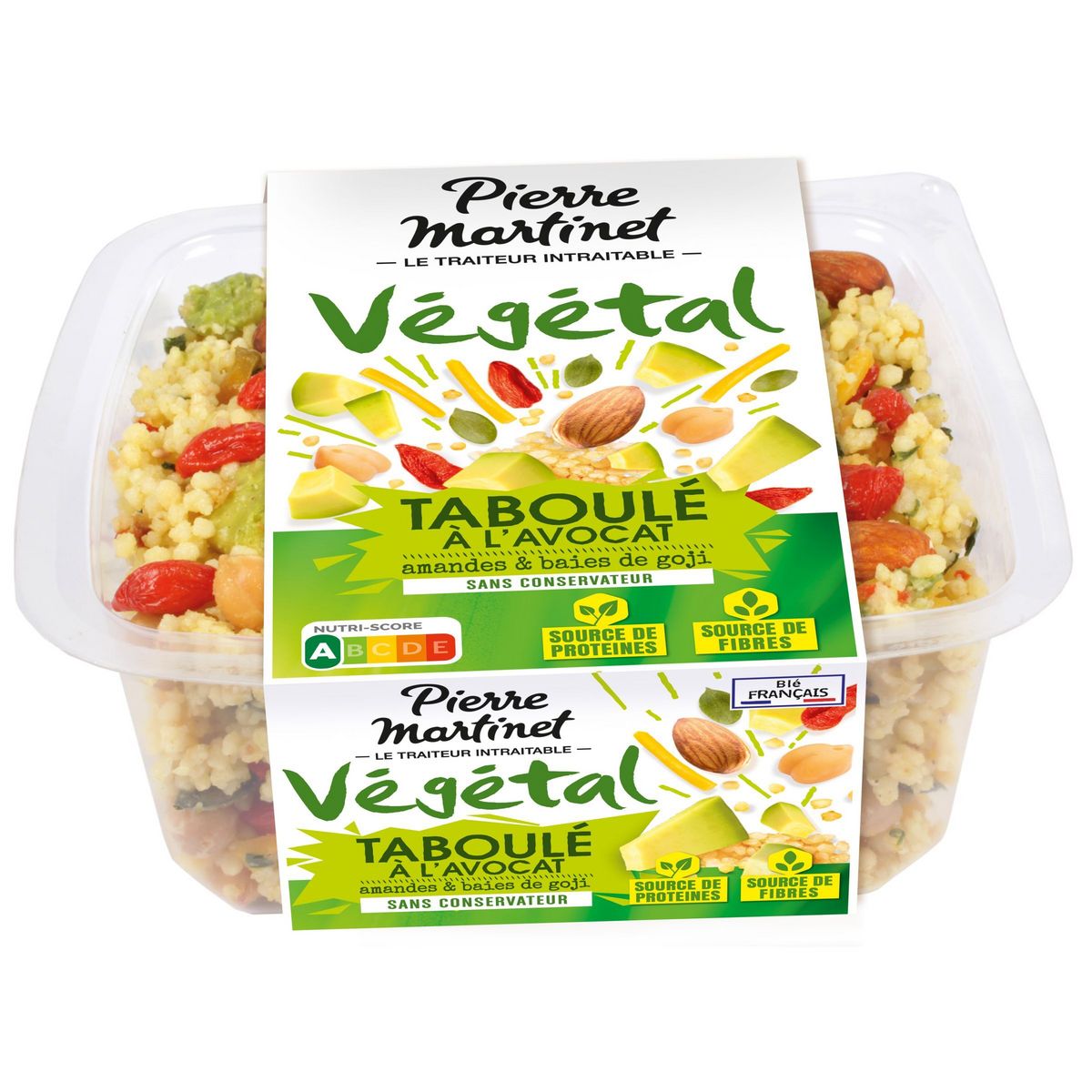 Un Taboulé agrémenté d’un aliment « tendance » : l’avocat. Agrémenté de pois chiches, amandes, carottes jaunes en julienne, baies de goji et graines de courge, ce taboulé avec blé français, ravira les papilles !