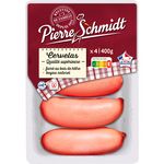 Une farce fine élaborée à partir de viande de porc française, relevée d’un mélange d’épices, dans son boyau naturel.