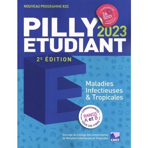 Le PILLY étudiant 2023 est l'ouvrage de référence du Collège des universitaires de Maladies Infectieuses et Tropicales (CMIT), pour la préparation des étudiants en médecine à l'examen national en lien avec la réforme du 2e cycle (R2C). La première partie de cet ouvrage s'attache aux connaissances, réactualisées selon les dernières recommandations. Tous les items d'infectiologie du nouveau programme officiel, avec les connaissances de rang A et de rang B y sont traités. En introduction de chaque item, un tableau des connaissances exigibles avec leur rang (A ou B) est rappelé. Un balisage avec code couleur selon le rang, des tableaux, figures et iconographies didactiques facilitent le travail de l'étudiant dans l'acquisition et la mémorisation des connaissances nécessaires (A ou B) à la compréhension et la prise en charge des principales maladies infectieuses. Ce gros travail de mise en forme a aussi pour objectif d'apporter de la convivialité à l'ouvrage. Cette partie servira pour la préparation aux examens facultaires de Maladies Infectieuses et Tropicales, mais aussi, en 6e année, aux épreuves dématérialisées nationales (EDN). La seconde partie de cet ouvrage met l'accent sur l'acquisition des compétences, à partir de fiches de situations cliniques de départ (SDD), découpées en une liste limitée d'attendus d'apprentissage. L'objectif de cette partie est de faciliter votre acquisition des compétences et de préparer les examens cliniques objectifs et structurés (ECOS). Des verbatims illustrent les attendus d'apprentissage faisant appel aux compétences de communicateur , ils pourront vous aider à trouver les mots adaptés dans une situation clinique. En outre, cette partie est enrichie de contenus multimédias (images, vidéos illustrant des interactions entre un médecin et un patient) auxquels vous pourrez accéder grâce à des QR codes.