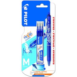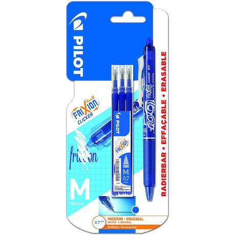 Lot 1 stylo effaçable pointe moyenne bleu FriXion Ball Clicker + 3 recharges effaçables bleues FriXion Ball