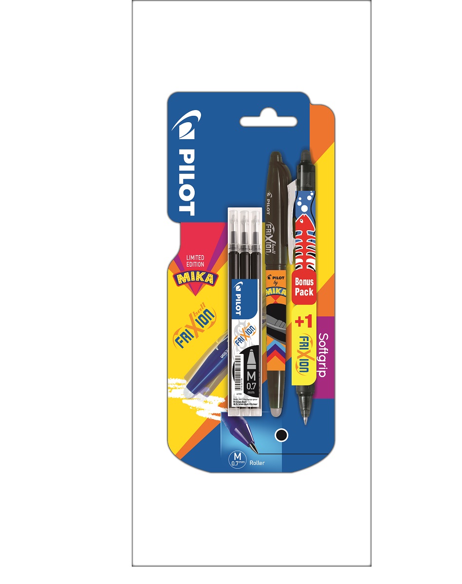 Stylo effaçable Frixion Ball noir + étui de 3 recharges noires + 1 Mika Clicker