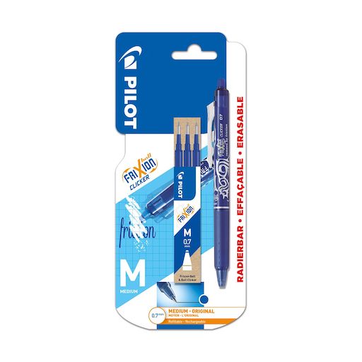 Stylo roller Frixion Clicker bleu + 3 recharges pointe moyenne
