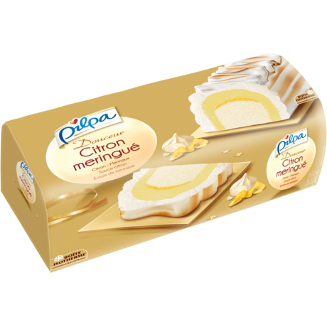Glace au citron aromatisée (foncé) 39.6%, glace au citron aromatisée 29.6%, meringue 21.6%, sauce citron aromatisée 8.6%, morceaux de meringue enrobés de beurre de cacao 0.6%. Cette bûche s’inspire de la célèbre tarte au citron meringuée pour le plus grand plaisir de vos papilles! Glace et sauce citron avec sa meringue tendre caramélisée au chalumeau, agrémentée de morceaux croquants de meringue.