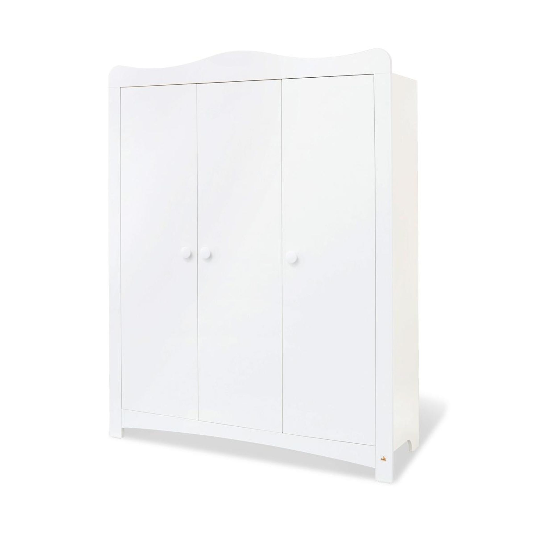 En raison de la forme élégante et incurvée apporte au cabinet, Florentina 'large une atmosphère affectueuse dans le royaume des plus jeunes, Avec les 3 jeux de boutons de meubles aux couleurs tendance blanc, rose et menthe, la pièce peut être personnalisée à votre guise Avec ses 3 portes, le meuble offre beaucoup d'espace de stockage pour tout ce qui doit être rangé dans la chambre d'enfant. À l'intérieur, 'Florentina' est équipée de 6 tablettes réglables en hauteur et d'une tringle Qualité Pinolino de haute qualité, Matériel: Décor: Uni, blanc, Dimensions: L 140 cm, P 57 cm, H 180 cm, Comprend 1 garde-robe et 3 boutons de meubles, installation requise. 10 ans de garantie Pinolino Plus, Entretien: l'armoire peut être essuyée avec un chiffon propre et humide.