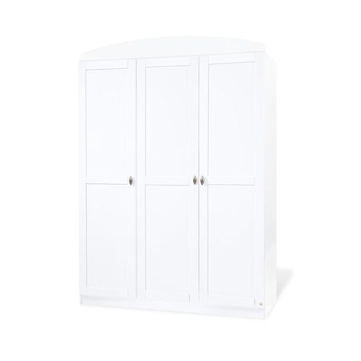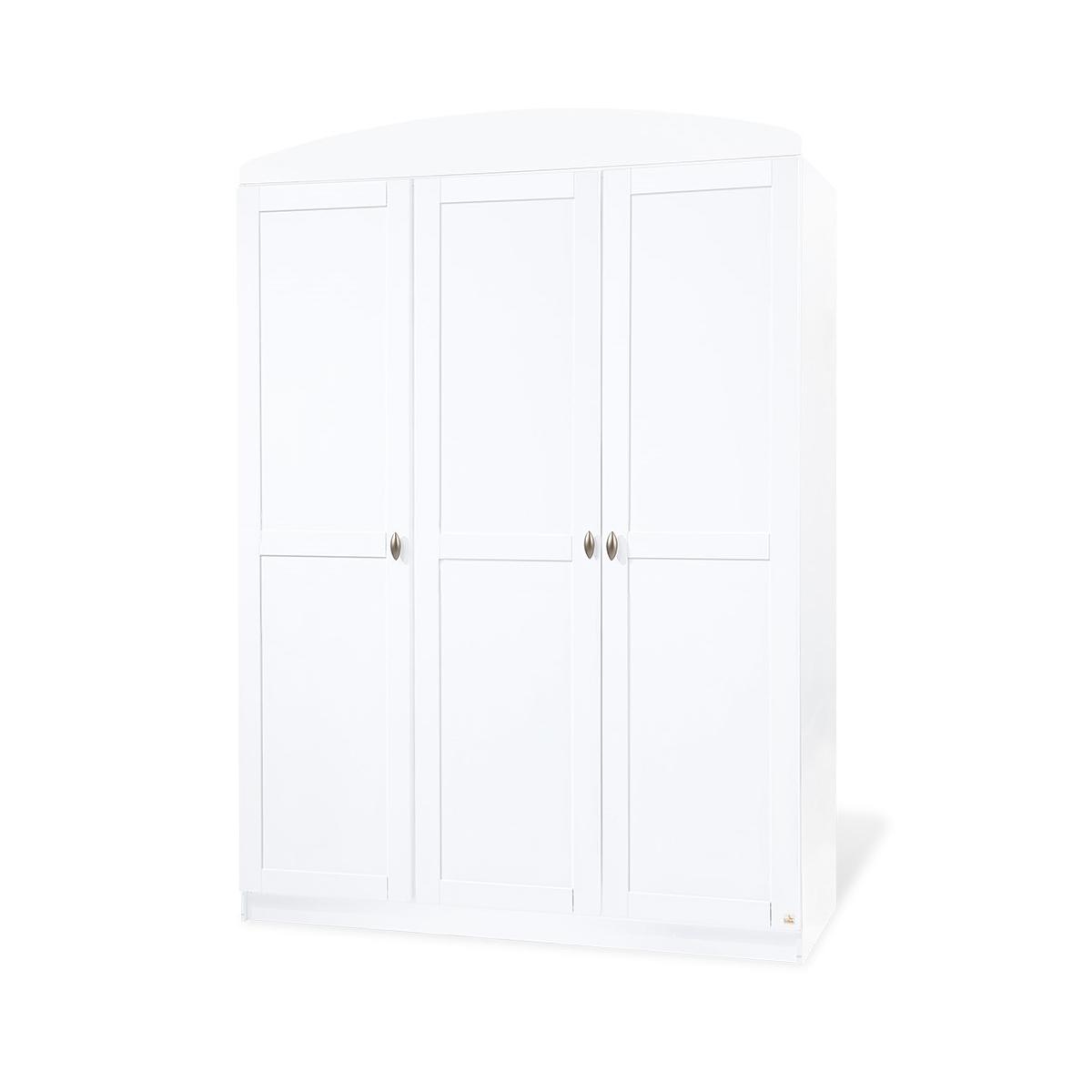 Armoire pratique à 3 portes, décor blanc. La grande armoire, Laura 'impressionne par son design gentiment arrondi et amical, avec ses 3 portes, elle offre beaucoup d'espace de rangement. À l'intérieur, Laura est équipée de 6 tablettes ajustables en hauteur et d'une tringle. Qualité Pinolino de haute