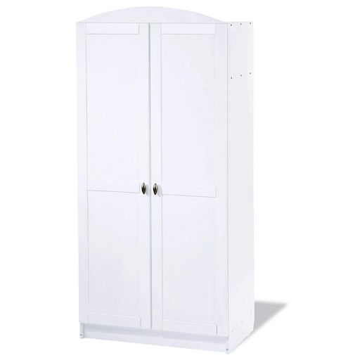 Armoire pratique à 2 portes, décor blanc. La garde-robe 'Laura' impressionne par son design gentiment arrondi et amical, avec ses 2 portes, elle offre beaucoup d'espace de stockage. À l'intérieur, Laura 'est équipée de 6 tablettes réglables en hauteur et d'une tringle à vêtements. Qualité Pinolino d