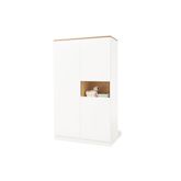 Armoire Pinolino Linje large ? 3 portes avec système Soft-Close, 1 niche ouverte, 4 étagères réglables en hauteur, 1 tringle ? décor blanc uni et chêne à structure bois véritable ? dimensions L 110 x P 52 x H 188 cm L'armoire Linje offre un vaste espace de rangement pratique et élégant pour la chambre d'enfant. Avec ses 3 portes, ses 4 étagères réglables en hauteur et sa tringle, elle permet de ranger facilement vêtements, jouets, linge de lit et accessoires. Les portes sont équipées du système Soft-Close, garantissant une fermeture douce et silencieuse, tout en protégeant les doigts des enfants lors de leurs explorations. Le décor blanc épuré est sublimé par des accents en chêne à structure bois véritable. La niche ouverte apporte une touche de modernité et peut être utilisée comme espace décoratif ou surface de rangement supplémentaire.