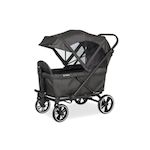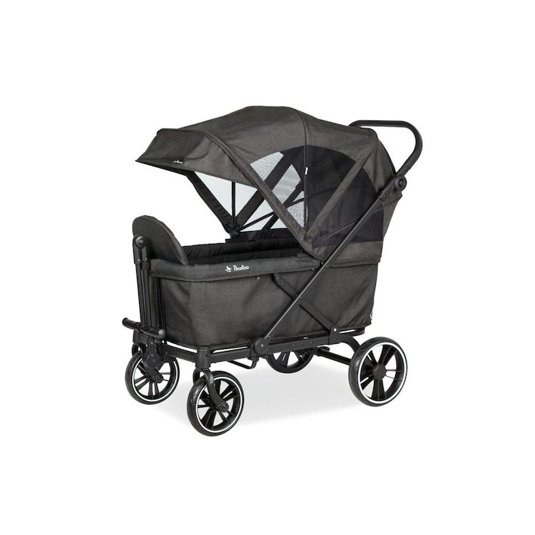 Chariot enfant pliant Pinolino « Cruiser », avec roues amovibles, aide au basculement, convient au transport d'enfants. Structure métallique, laquée noir mat et tissu, anthracite chiné. Dimensions L 118 x l 64 x H 64, avec pare-soleil 116 cm