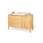 Commode 'Enno' extra large, avec Self-Soft-Close et Soft-Close, 1 porte, 3 tiroirs, 1 tablette réglable en hauteur, 1 plan à langer. Massif : hêtre, huilé à l'huile dure à base de graines de lin. Dimensions L 141 x P 76 ou 52 x H 100 cm, certifié FSC® (FSC-C120795)