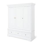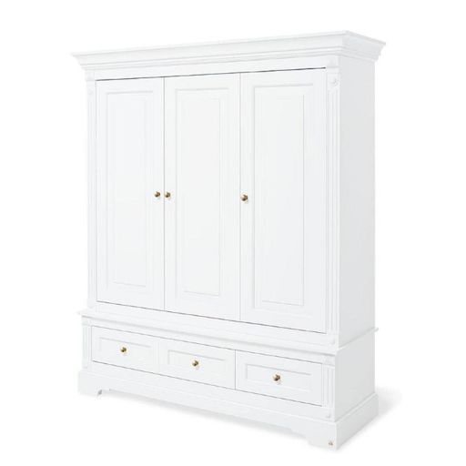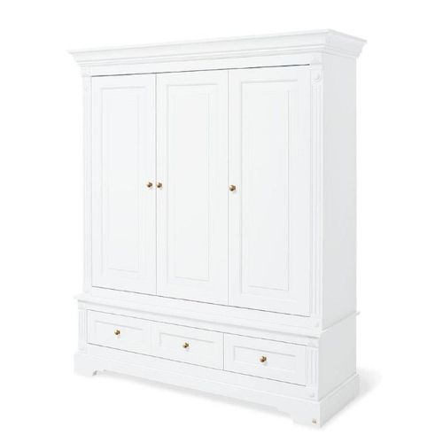Apportez élégance et raffinement à la chambre de votre enfant avec l'armoire « Emilia » Gold ? Édition limitée. Ses lignes romantiques et son décor uni laqué blanc mat en MDF de haute qualité en font une pièce majestueuse et intemporelle. Avec ses dimensions généreuses (L 178 × P 58 × H 208 cm), cette armoire 3 portes offre un vaste espace de rangement. Elle est équipée de 2 tiroirs, de 4 étagères réglables en hauteur et d'une tringle à vêtements, permettant d'organiser facilement vêtements, linge et accessoires. Des étagères supplémentaires sont disponibles en option chez Pinolino afin d'adapter la répartition intérieure selon vos besoins. Le système de fermeture automatique et amortie garantit un confort optimal d'utilisation, les portes et tiroirs se fermant doucement et silencieusement. En édition limitée, l'armoire est dotée de poignées dorées haut de gamme, qui subliment le style romantique de la collection. Faisant partie de la célèbre série Emilia, cette armoire peut être complétée par un lit bébé et une commode à langer assortis, pour une chambre harmonieuse et élégante.