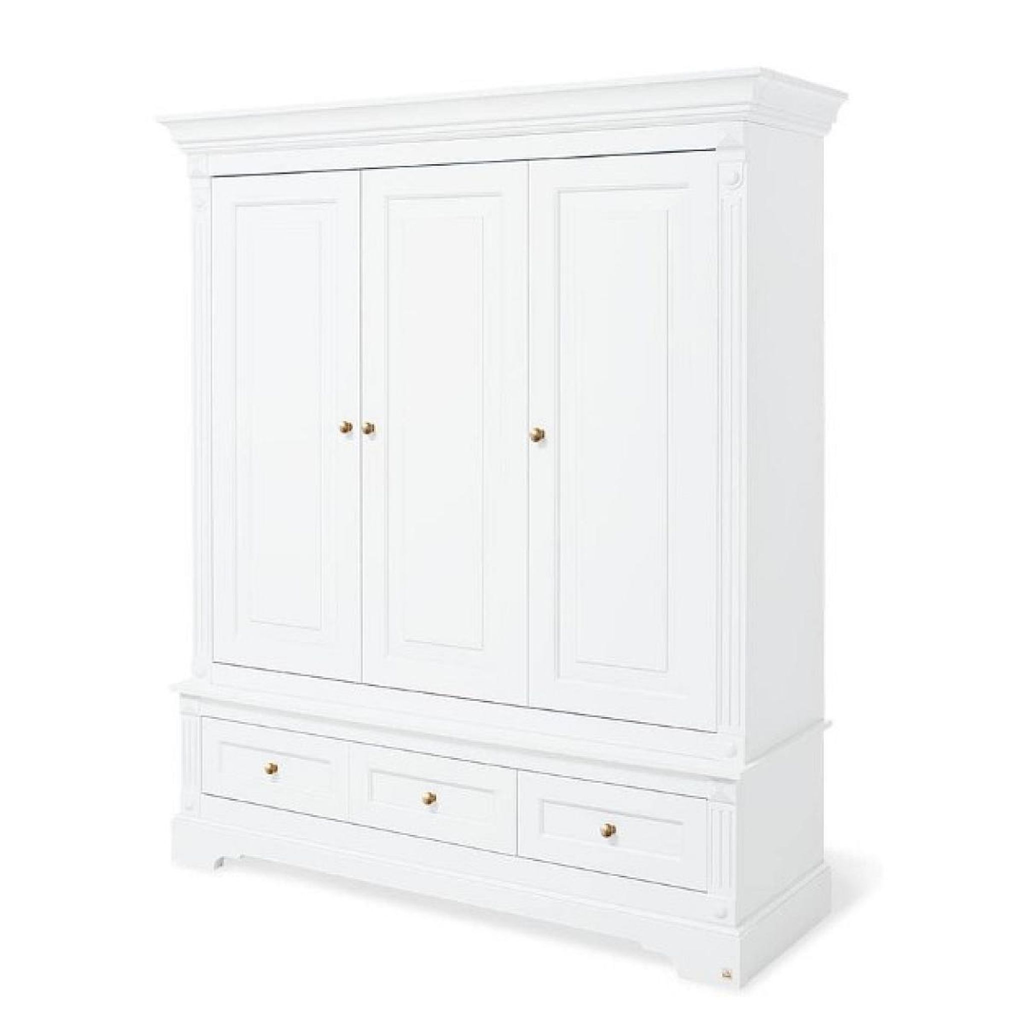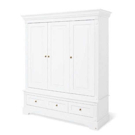 Apportez élégance et raffinement à la chambre de votre enfant avec l'armoire « Emilia » Gold ? Édition limitée. Ses lignes romantiques et son décor uni laqué blanc mat en MDF de haute qualité en font une pièce majestueuse et intemporelle. Avec ses dimensions généreuses (L 178 × P 58 × H 208 cm), cet