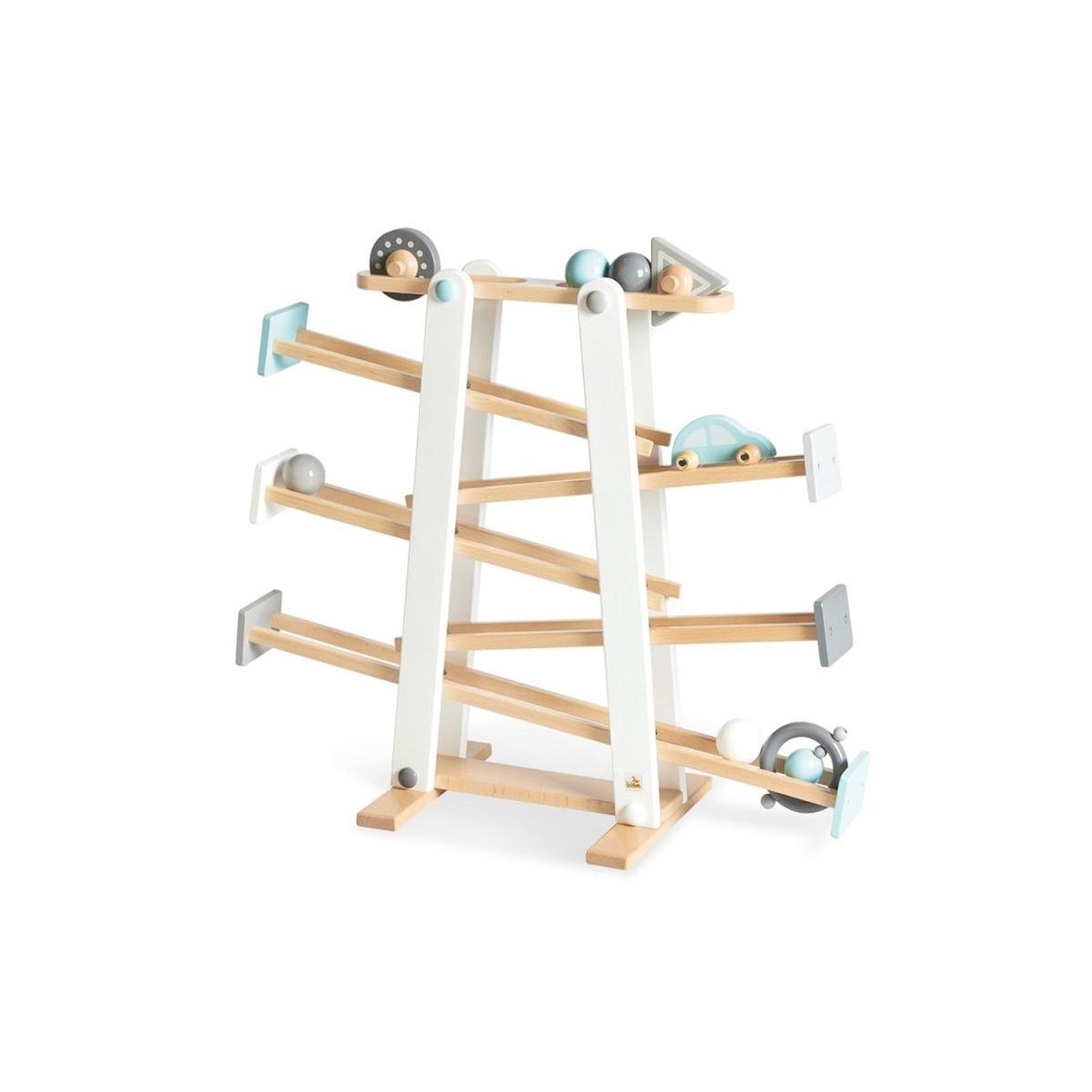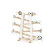 Masse partielle: hêtre, coloré et laqué clair. L 68 cm, L 25 cm, H 56 cm. 9 pièces: 1 piste à billes, 4 billes colorées (diamètre 45 mm), 3 éléments roulants, 1 voiture. Recommandé pour les enfants de 3 à 6 ans. Rail à billes, 9 pièces: 1 piste à billes, 4 billes colorées, (diamètre 45 mm), 3 élémen