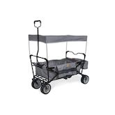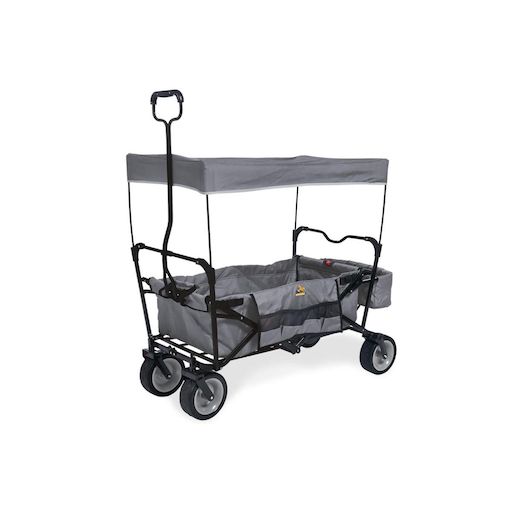 Cadre en métal, peint en noir et tissu, gris. Tissu 100% PU. Incl. toit ouvrant. L 124 cm, L 59 cm, H 67 cm ou avec pare-soleil 102 cm. Pliés ensemble en quelques étapes simples, dimensions L 22 cm, L 63 cm, H 80 cm. Zone de chargement: L 86 cm, L 43 cm, H 25 cm. Pneus en PU, essieux en acier. Avec poche arrière pour un espace de stockage supplémentaire. Capacité de charge 70 kg. Incl. Sac de transport pour un transport facile. Seulement pour le transport de marchandises. Livré sans accessoires