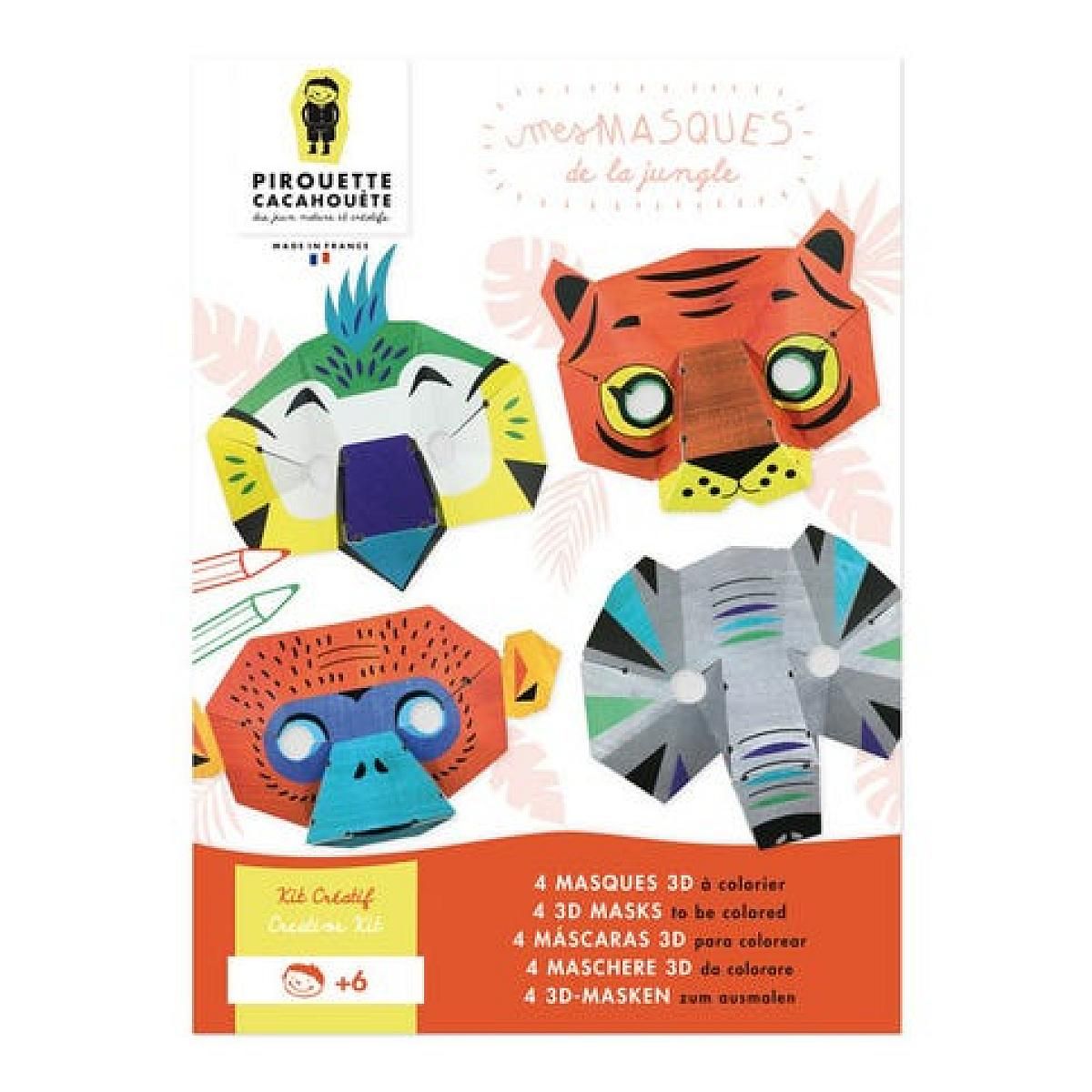 Plonge dans la jungle et deviens l'animal de ton choix ! Ce kit ludique propose de superbes masques à colorier, prêts à être décorés selon tes envies avant de prendre vie.