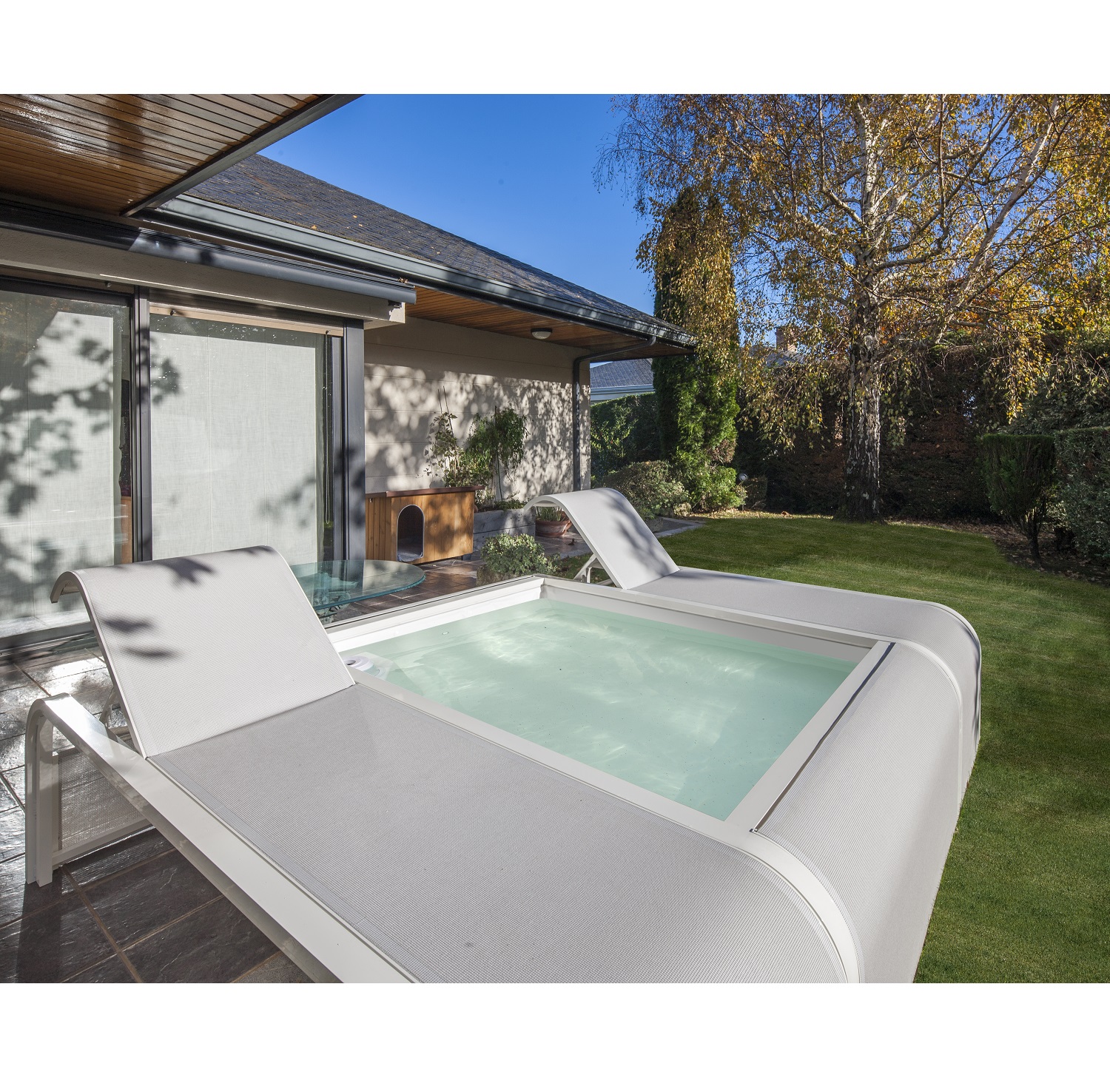 Piscine avec deux transats intégrés