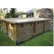 Ce kit piscine comprend de nombreux équipements de qualité: une structure en bois garantie 15 ans avec traitement autoclave classe 4 CTB+, une margelle double en pin ep. 27mm , madriers d'une épaisseur de 45 mm, un liner 75/100 de couleur beige, 1 skimmer, 1 refoulement, un filtre à sable D400 avec vanne à 6 positions, un débit de 6 m3/H, 50 kg de sable, une echelle de sécurité extérieure en bois et une echelle intérieure en inox, ainsi qu'un feutre de fond. La piscine peut être hors sol, semi-enterrée ou enterrée.