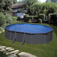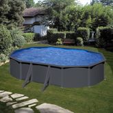 Piscine hors sol acier ovale - Gris anthracite - 5,27m x 3,27m x H 1,22m - LOUKO